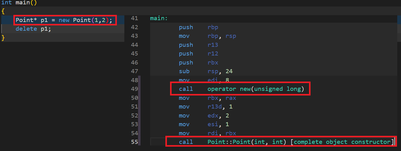 Point* p2 = new(p1) Point(1, 2); // 생성자 호출