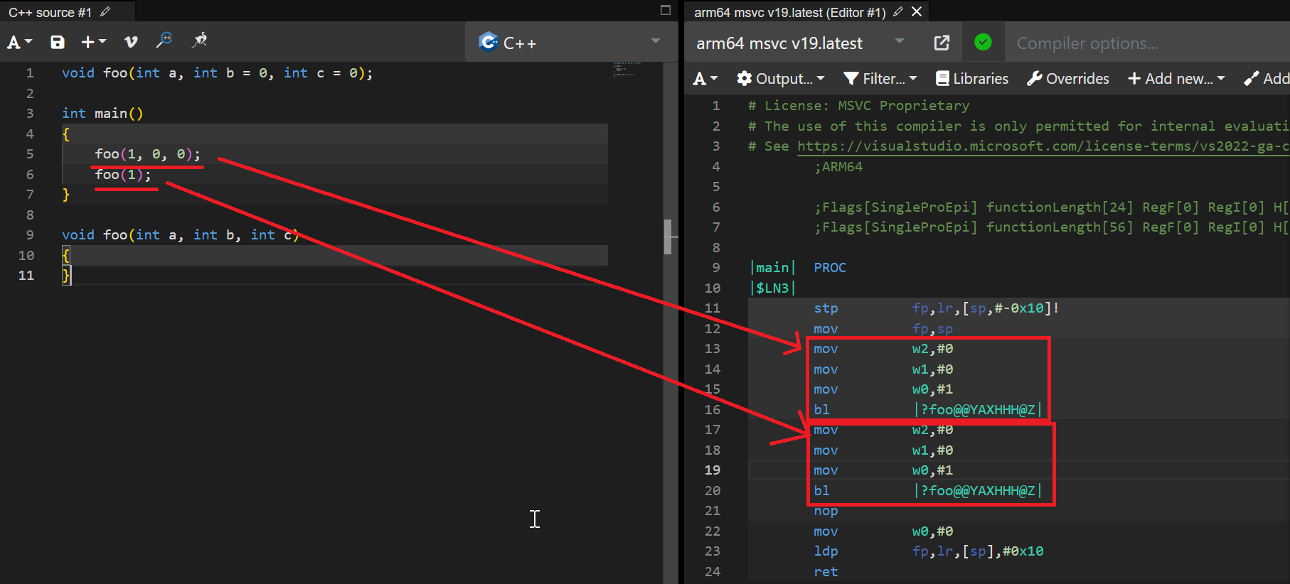 - 위는 Compile Explorer(https://godbolt.org/) 를 통해 확인한 것이다. 이 둘이 어셈블리 레벨로 볼때도 동일하다는 것을 확인할 수 있다.