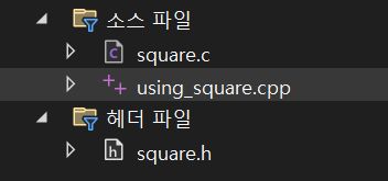 ※ square.c는 확장자가 C이므로, C 문법으로 컴파일을 한다. 즉, square.c는 Name mangling이 일어나지 않는다.