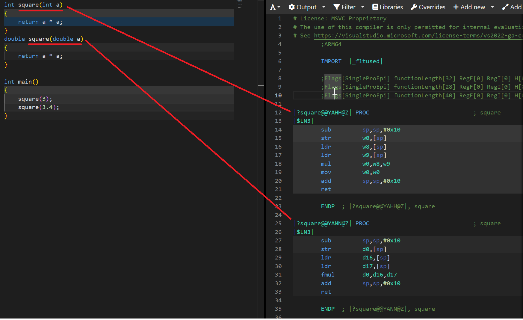- 컴파일 된 후의 코드에 있는 함수는 모두 이름이 다르다.