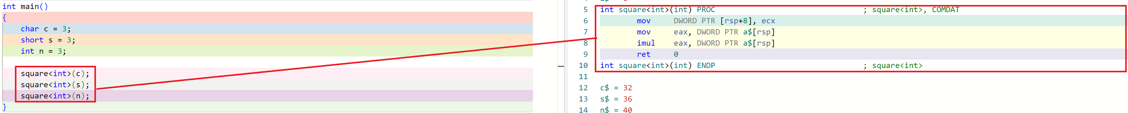 - main()에서 square<int>(3);과 같이 호출할 때, 함수가 생성됨을 확인할 수 있다.