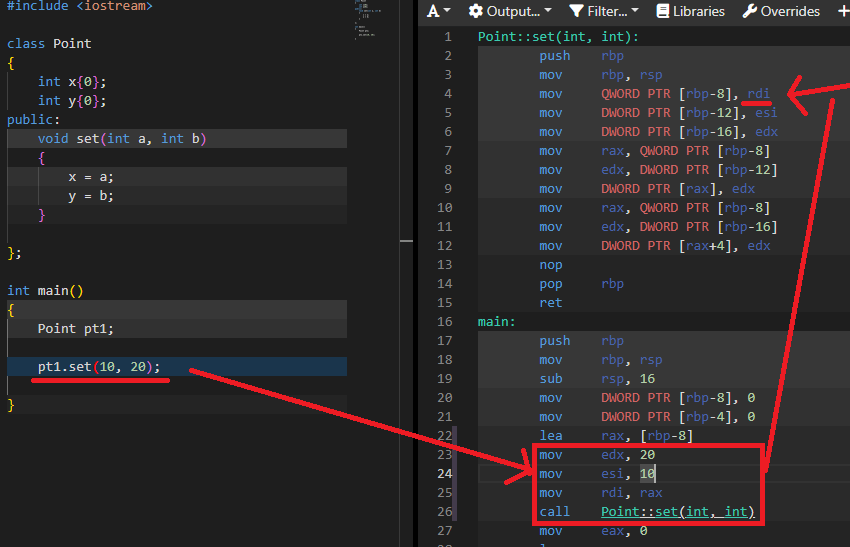 - 실제로 이렇게 변환되지는 않지만, 멤버 함수 호출 시 위와 같이 객체의 주소가 같이 전달된다.