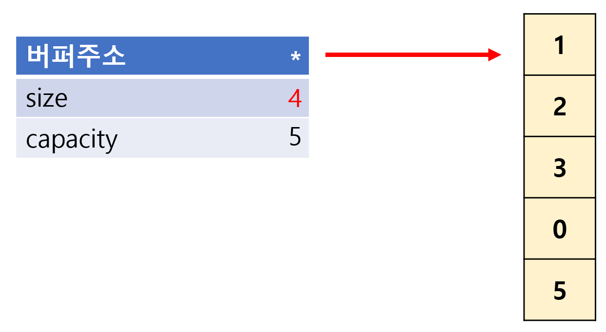 - 이처럼 실제 메모리 사용 공간은 5이다. 하지만 여기서 크기 값만 조정하여 사용하는 것이다.