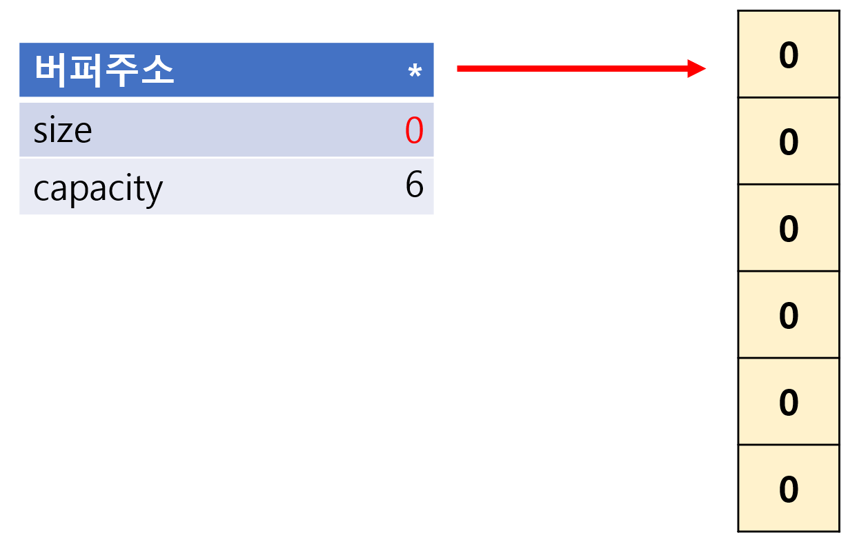 v.push_back(0); // capacity == size 이므로 메모리 재할당 필요