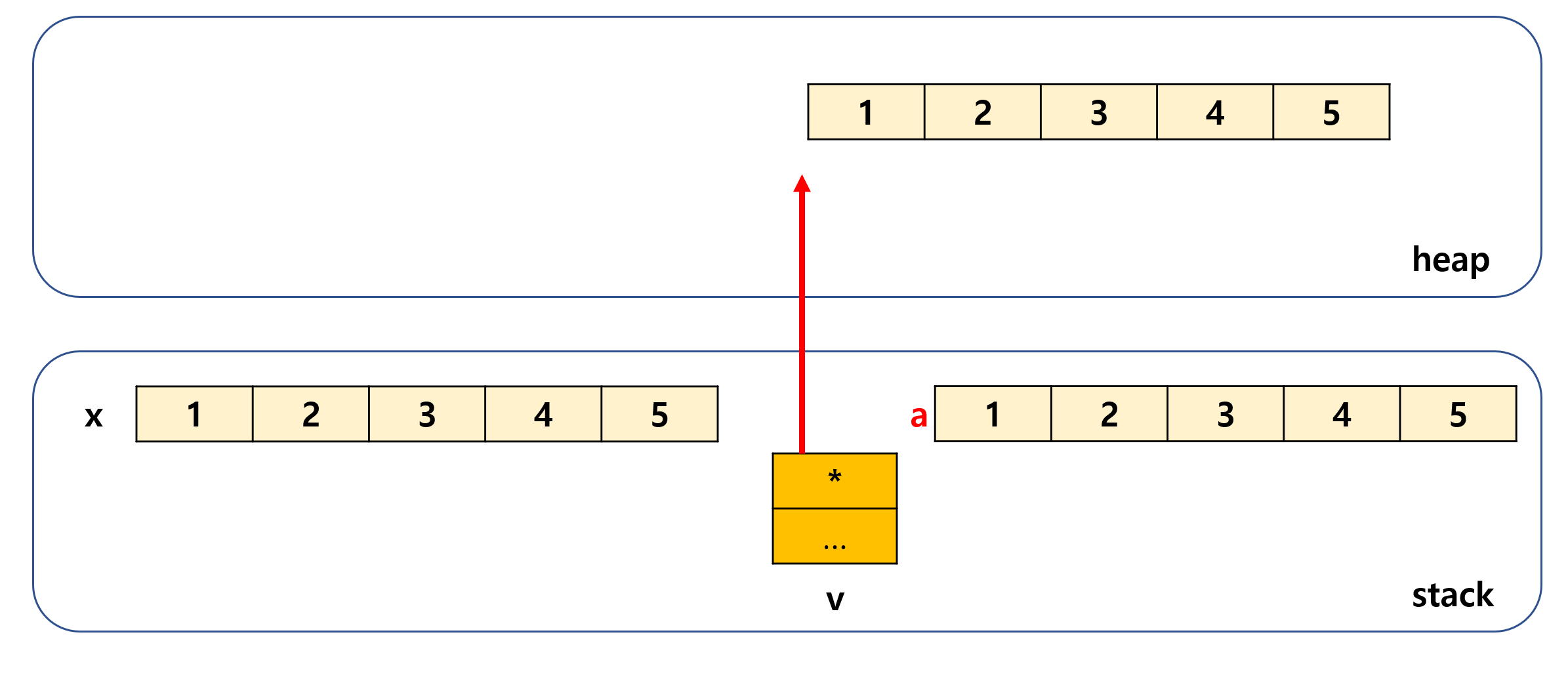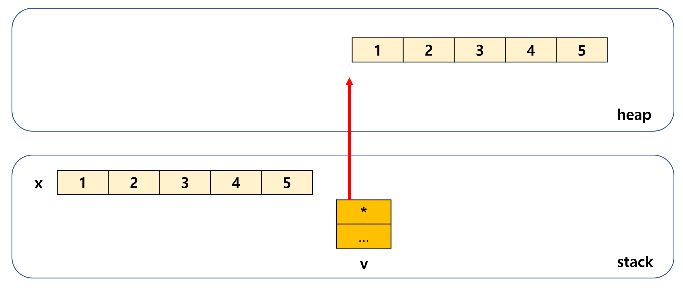 - vector 자체는 stack에 있지만, 실제 여기에 들어있는 요소들은 동적메모리로 할당되어 heap에 올라간다.