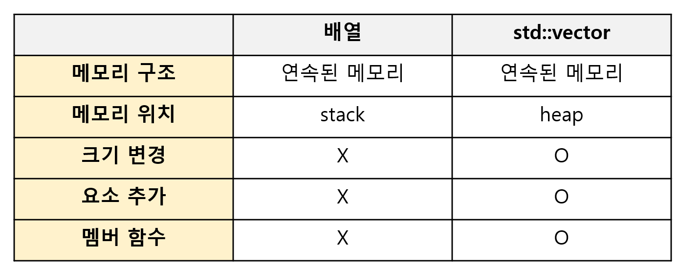 - 또 여러 멤버 함수를 통해 기존 배열에 없는 편의 기능을 제공한다.