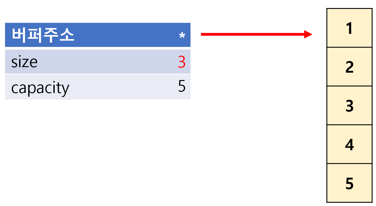 - vector에서는 capacity 라는 것과 size라는 개념이 별도로 존재한다.