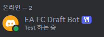 - 현재 활동을 'Test'로 설정한다. Discord 사용자들이 봇의 현재 상태를 볼 수 있도록 해준다.