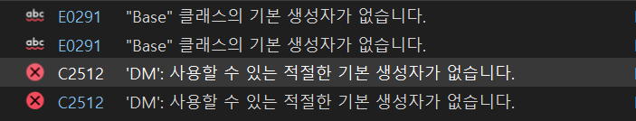 - Base, DM에 대한 Default Constructor가 없다고 나온다.
